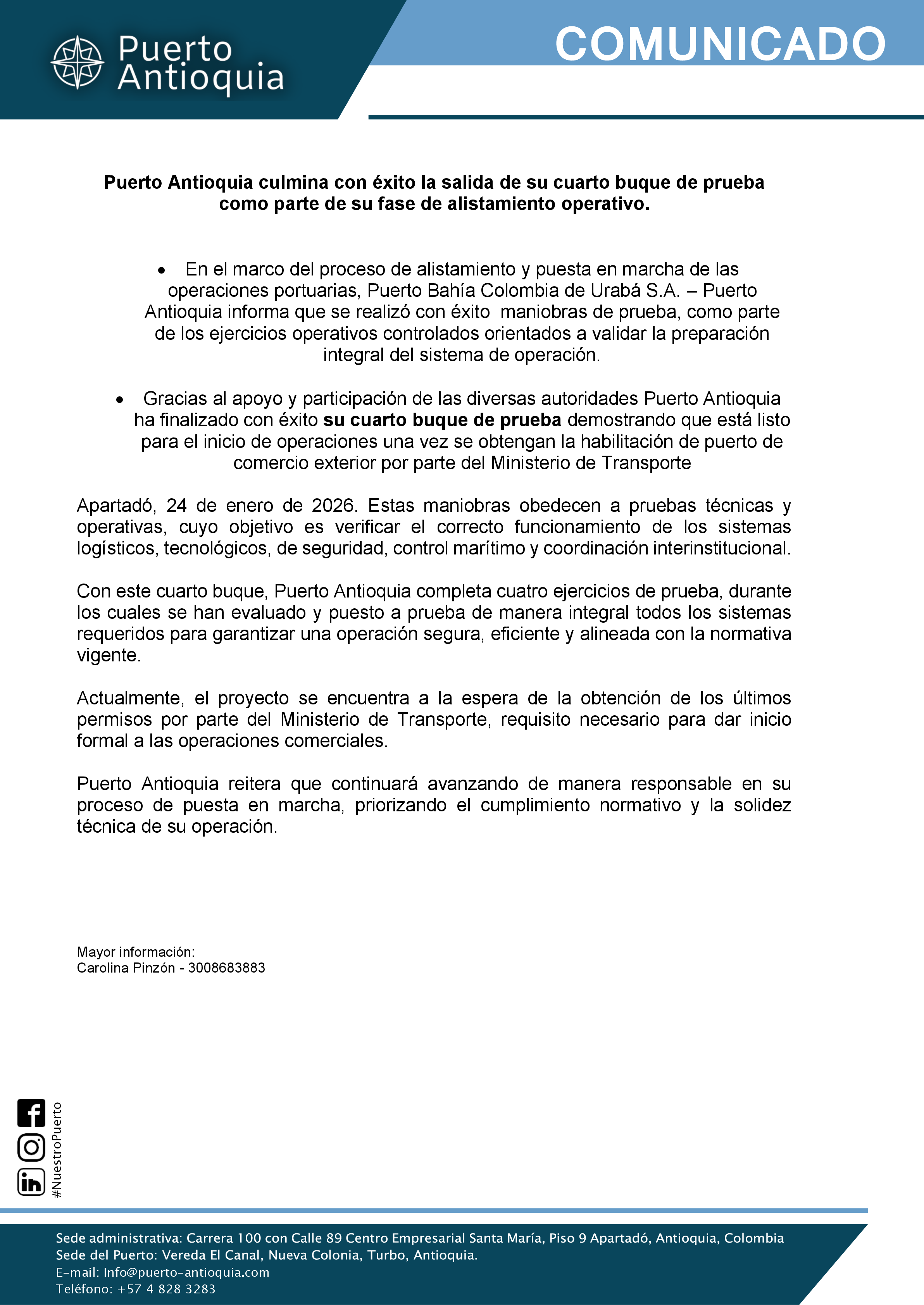 We are a multipurpose terminal located on the southeastern side of the Gulf of Urabá, Antioquia, Colombia; with the capacity to manage general cargo, vehicles, refrigerated and dry containers: solid and liquid bulk grains, not hydrocarbons. For this purpose, we prioritize technology, safety, high comprehensive quality in processes, infrastructures and services; to capitalize on the opportunities that our strategic location represents, such as the port in the Caribbean 350 kilometers closer to the main production and consumption centers in the country.
